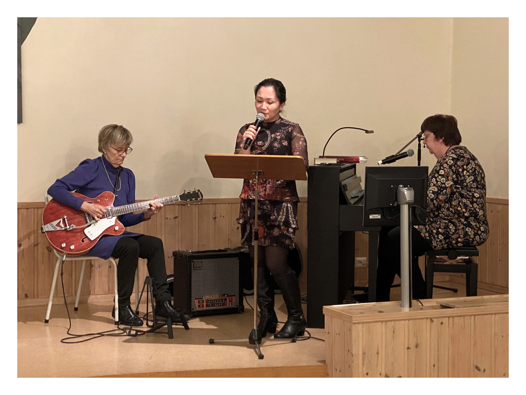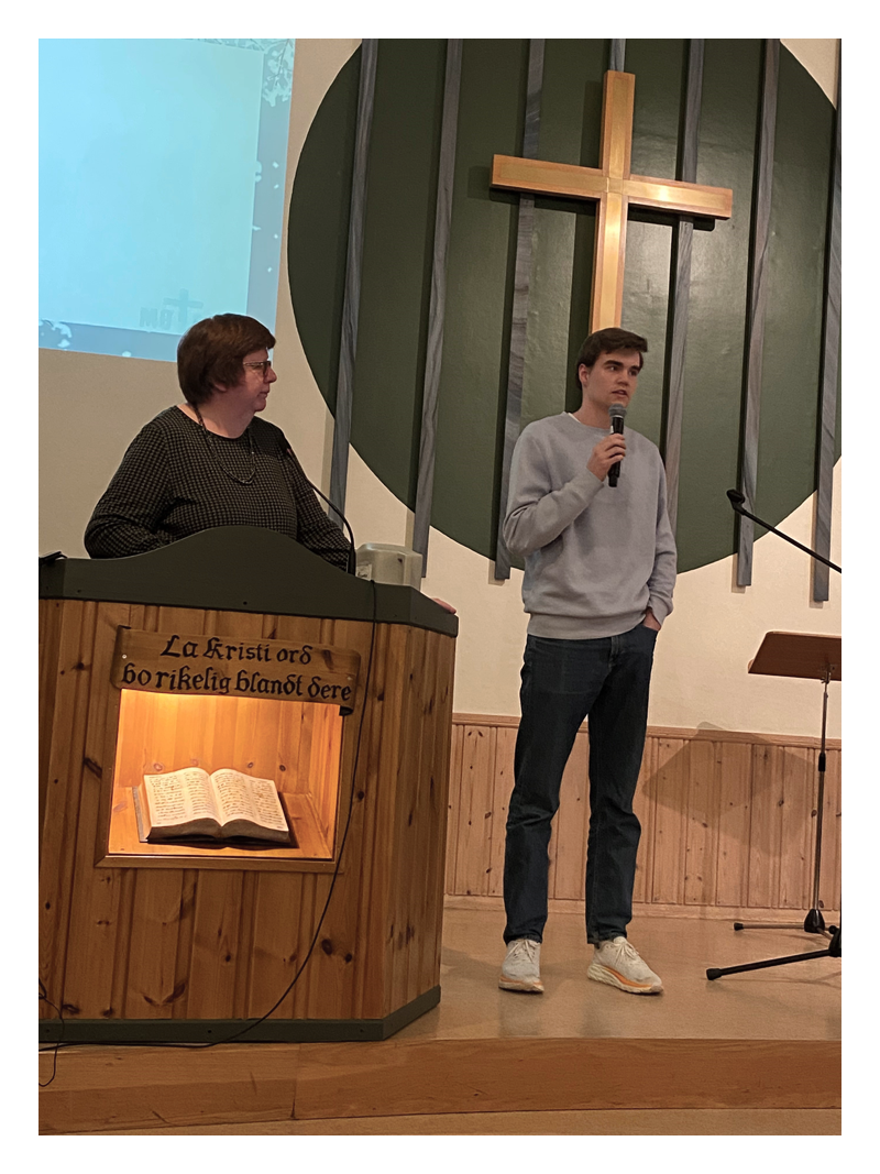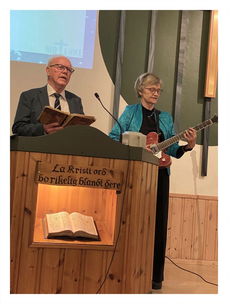 Så var vi kommet til søndag ettermiddag og Misjonsfest på Å Misjonshus. Lise Taraldsen ledet festen, og Eli Dalsaunet hadde åpningsord der hun minnet oss om at «Herren er nær». Åse og Ole deltok med sang og musikk, Yu-Lin spilte og sang for oss og så ledet Lise og Åse ei sangavdeling for de aller minste. Lise hadde også et lite intervju med Marcus Ugedal, som var hjemme på vinterferie, og han fortalte om hvordan det er å være bibelskoleelev (BiG – Bibelskolen i Grimstad) dette året. Marcus delte også et bibelvers med oss som betyr mye for han; «For meg er livet Kristus og døden en vinning», Filipperne 1, 21. I talen viste Martin først glimt fra Norea sitt store arbeid i Sentral-Asia, og vi sitter igjen med takknemlighet for at vi får være med i dette arbeidet. Videre i talen gikk han ut fra Salme 103; «Min sjel, lov Herren!», og understreket at vi skal takke og prise Herren for det han er, og det han har gjort for oss. På Misjonsfesten var det også bevertning og samtale rundt bordene, og det ble tatt opp en gave til Misjonen.