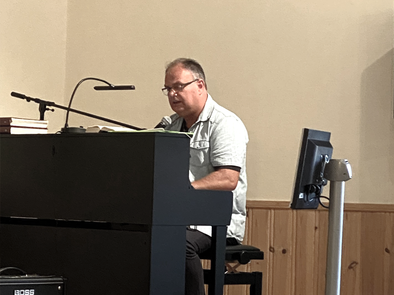 Tirsdag kveld var det Roald Ugedal som ønsket velkommen til Sommermøtene, før han gav stafettpinnen for møtet videre til Per Tveten. Per har vært i Åfjord mange ganger, og er godt kjent på Å Misjonshus, men Gunnar Leif Karlsen var et nytt bekjentskap for oss i Åfjord. Per intervjuet derfor Gunnar Leif i begynnelsen av dette møtet, slik at vi skulle bli litt bedre kjent med han, også. Per er vel det en kan kalle en "sangevangelist", og han bidro med både sang på møtene. Denne kvelden satte han seg ved pianoet og sang "La meg se ditt ansikt, kjære Jesus", før Leif Gunnar hadde kveldens andakt. Han talte ut fra Apg. 15, 11, der det blant annet står; "Men vi tror at vi blir frelst ved Herren Jesu nåde", og han minnet om at vi skal få hvile i nåden hos Jesus, det holder for Gud. I avslutningen av møtet snakket Per om den rike unge mannen. Hva var det han manglet, jo, han manglet Jesus! Spørsmålet til oss som var på møtet ble; Strever vi så mye for å gjøre oss "skikket" overfor Gud, at vi glemmer at det eneste vi virkelig behøver, er Jesus?