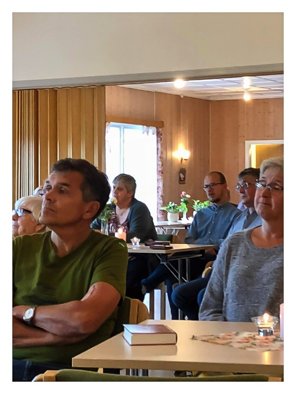 Onsdag kveld var det Kari Skaldebø som ledet møtet, og Maria Almås sang for oss. Tarjei tok utgangspunkt i Salme 121 i talen, der vi blant annet kan lese «Jeg løfter mine øyne opp til fjellene, hvor skal min hjelp komme fra? Min hjelp kommer fra Herren, han som skapte himmelen og jorden». Hva vil det egentlig si å være Guds barn? Vi ble oppfordret til å skrive vår livshistorie: «Mitt liv med Jesus», dette for å se hva Jesus er, har gjort, og gjør for oss daglig.